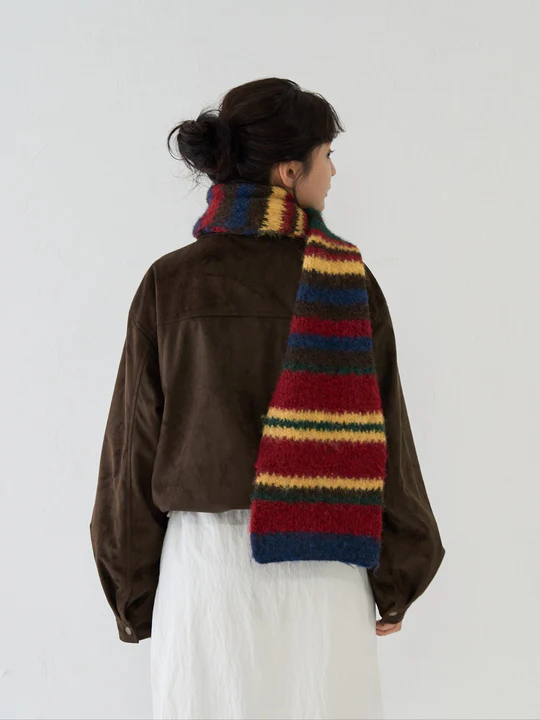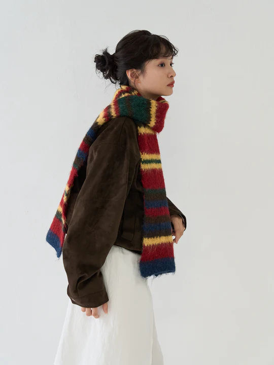 Този привличащ вниманието шал се отличава с цветна, произволна цветова схема.